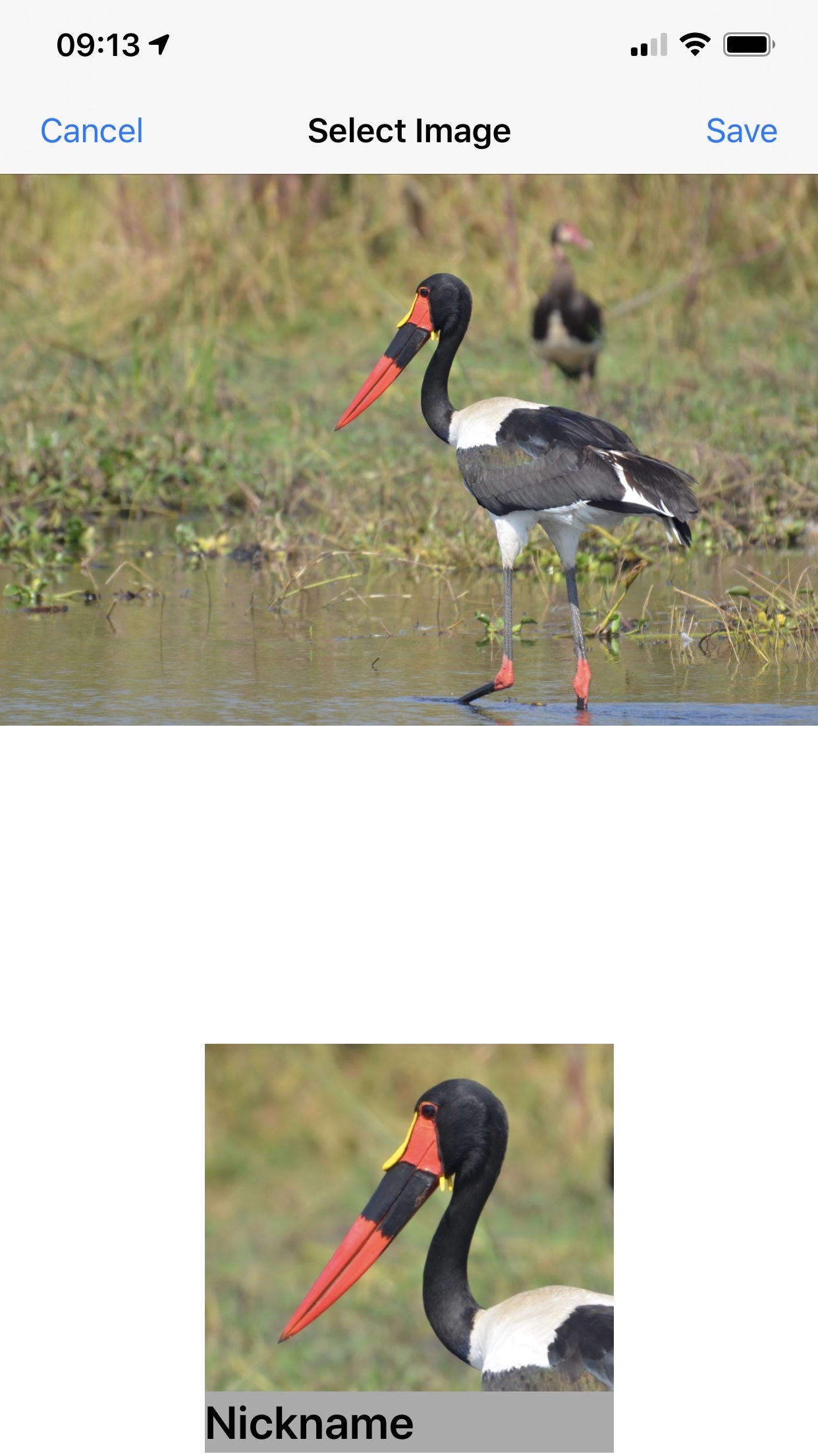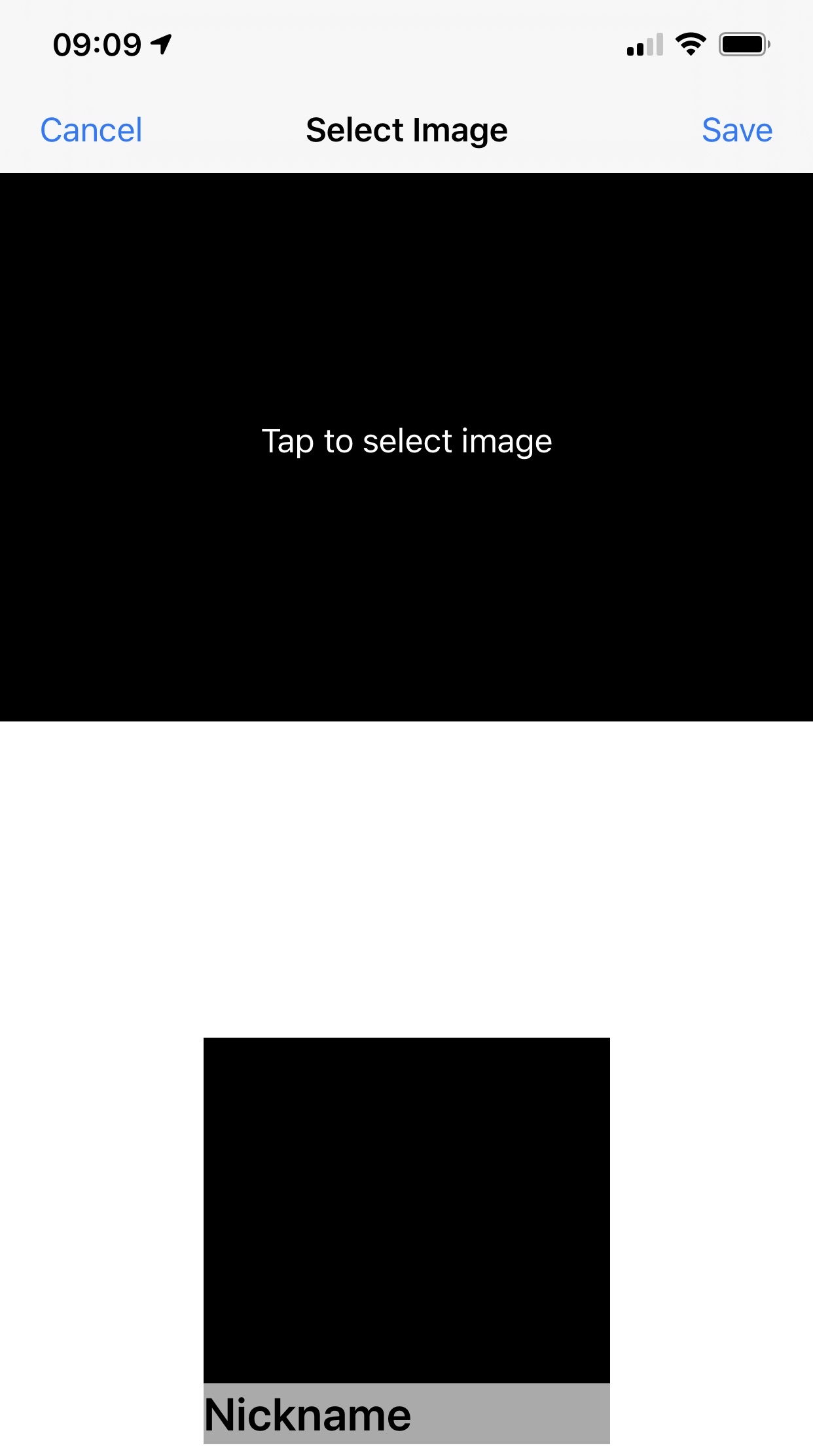 The image below shows the screen before selecting a photograph. Tap on the image placeholder to select a photograph (initially it says "Tap to select image").