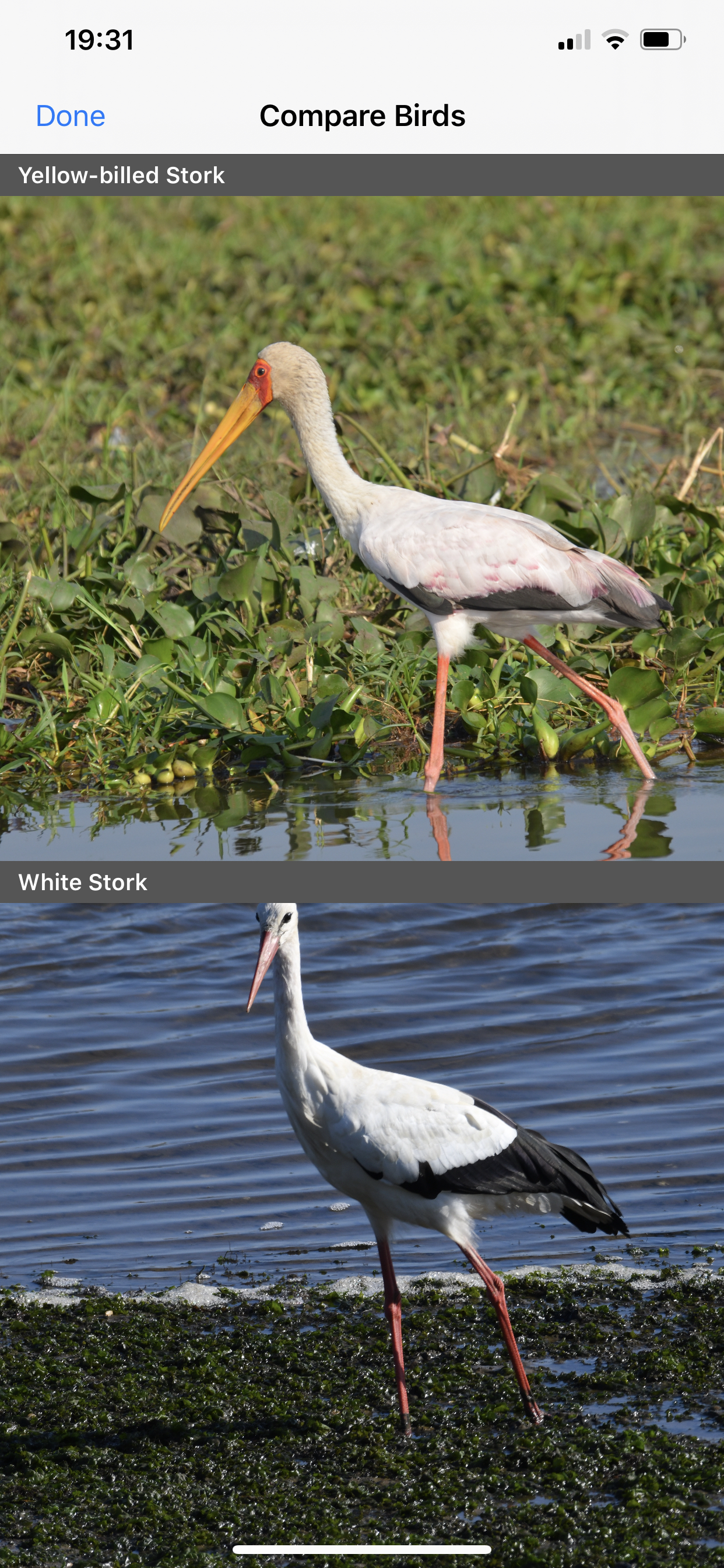 This screen presents the photographs of two birds selected from the gallery for comparison.